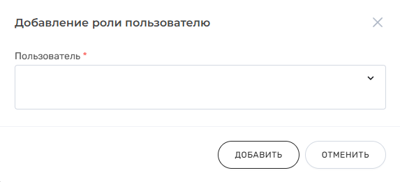 - Нажать в карточке нужной роли на кнопку «Добавить пользователя». Откроется окно «Добавление роли пользователю».