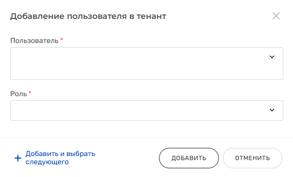При нажатии на "Добавить", окно будет закрыто, а выбранный пользователь(и) будет добавлен в тенант с указанной ролью(ями).