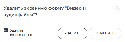 При удалении экранной формы доступна опция "Удалить безвозвратно":