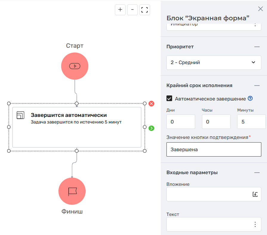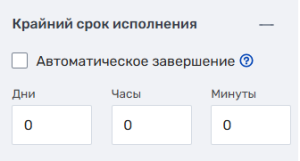 4. | Исполнитель | Выбирается пользователь или группа пользователей, на которых будет назначена задача после публикации и запуска процесса. По умолчанию исполнителем является инициатор запуска процесса |