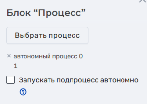 В свойствах блока после выбора процесса отображается чекбокс "Запускать подпроцесс автономно":