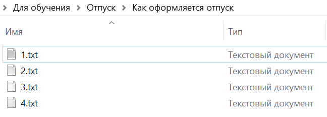 4. Внутри каждой папки-рубрики необходимо создать текстовые файлы с примерами пользовательских запросов, относящихся к данной тематике.