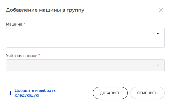 - В выпадающем списке "Машина" выбрать машину, учетную запись которой нужно добавить в группу. В списке отображаются только машины, у которых еще остались учетные записи без группы; но эти учетные записи уже добавлены в текущий тенант.