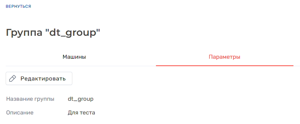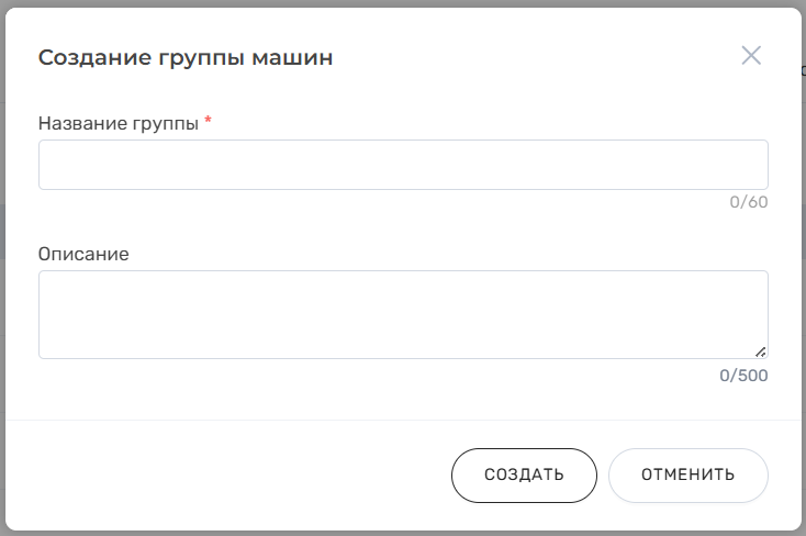 - Создание новой группы машин по кнопке "Создать группу машин"