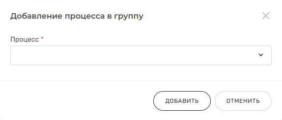 - В выпадающем списке в поле "Процесс" выбрать тот процесс, который необходимо добавить в группу. При этом в списке отображаются только те процессы, которые добавлены в текущий тенант, но их нет в группах процессов.