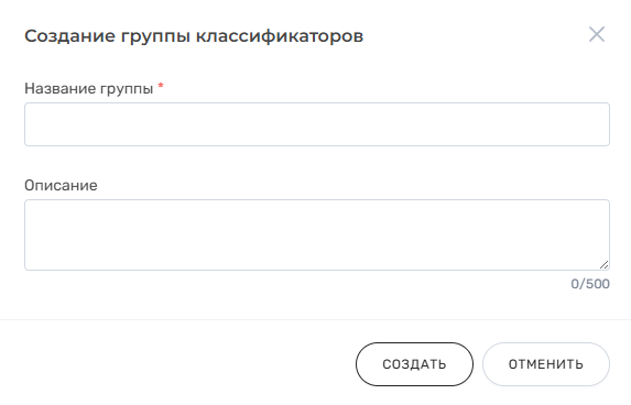 - Создание новой группы классификаторов по кнопке "Создать группу классификаторов"