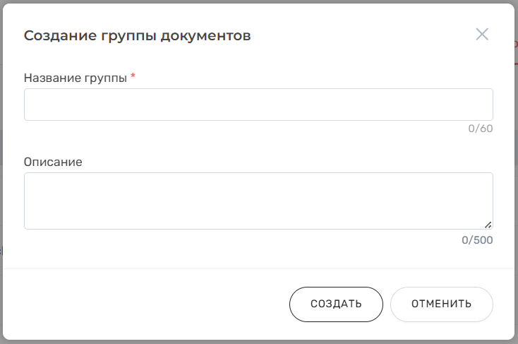1. Нажать на кнопку "Создать группу документов". Откроется окно "Создание группы документов":