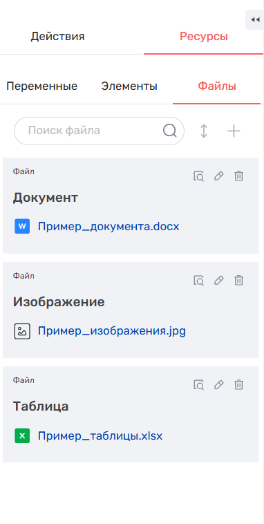 • Файлы – изображения и документы. Обычно сюда загружают изображения, которые используются для сравнения или поиска элементов на экране, и шаблоны документов.