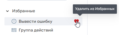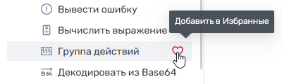 Чтобы добавить действие в избранное, нажмите кнопку справа от его названия. Действие появится в блоке «Избранные» в верху списка и по-прежнему будет отображаться в своей группе.