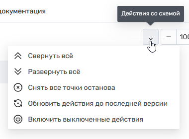 - Свернуть всё – сворачивает все развёрнутые действия на схеме.