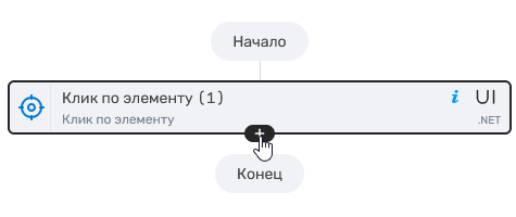 - Наведите на блок действия. Сверху или снизу отобразится кнопка добавления действия.