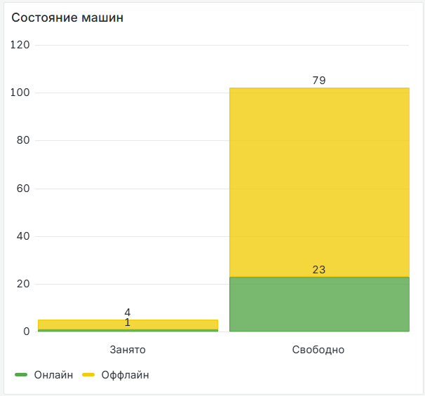 Диаграмма, отображающая текущее состояние учётных записей машин: количество свободных и занятых роботами, а также находящихся в статусе "Онлайн" и "Оффлайн".